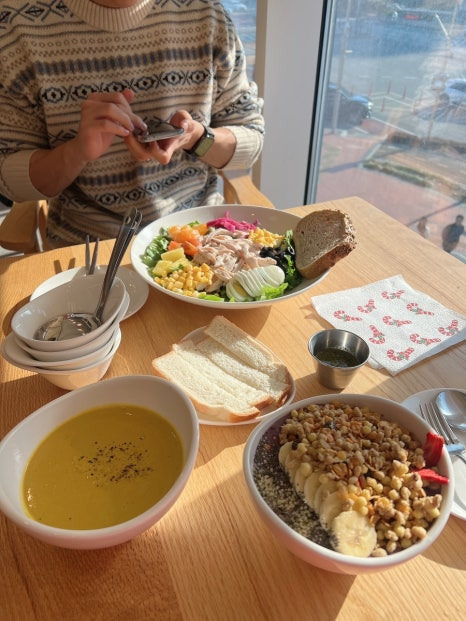 메뉴는 남편은 '아메리칸 트레이' 그리고 나는 '아사이 보울''단호박 수프' 선택했다.